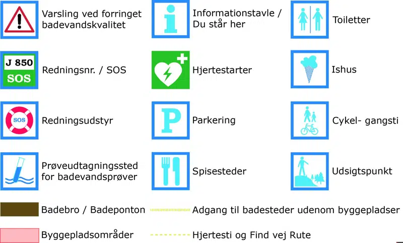 Signaturforklaring til oversigtskort over Nordstranden og Havnebad Køge Marina