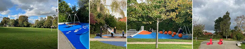 Beskrivelse: Bypark med store græsplæner der bruges til kulturarrangementer og boldspil. I den vestlige del af parken er sat en række træningsredskaber op. Det asfalterede areal er med bump og ramper for rulleskøjter, løbehjul og skateboard. Der er også borde og bænke som inviterer til ophold og picnic.