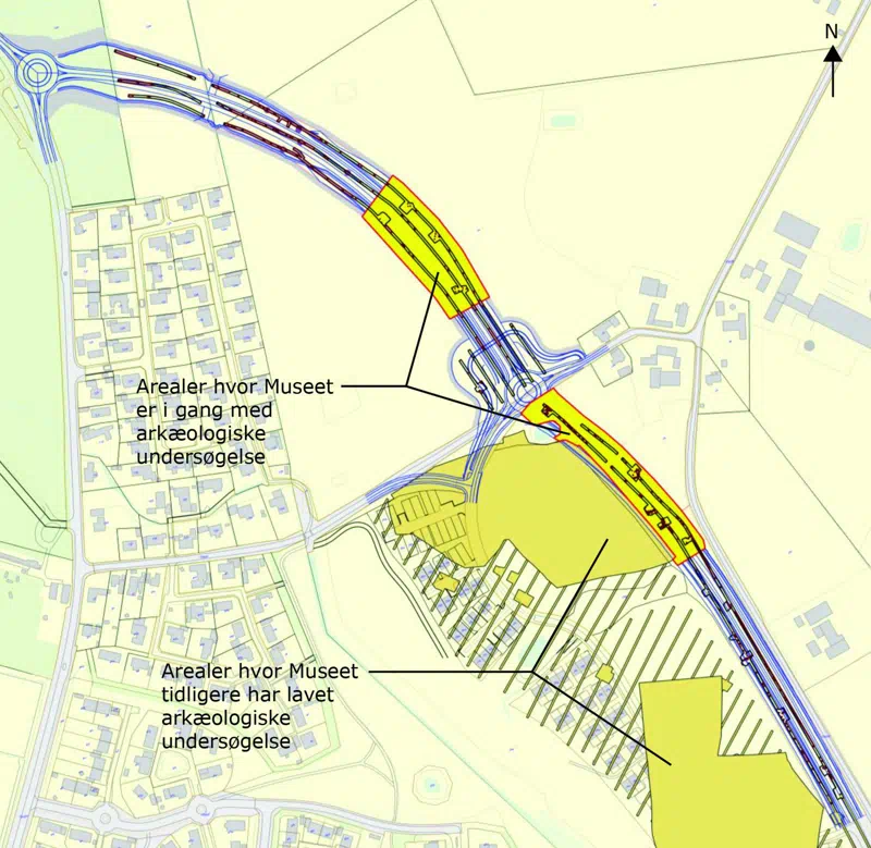 Inden vi kan komme videre med selve anlægsarbejdet, skal Museum Sydøstdanmark udføre en egentlig arkæologisk undersøgelse, med udgangspunkt i de forundersøgelser der tidligere er foretaget. De 2 områder der skal undersøges dækker et areal på 15.000 m2.