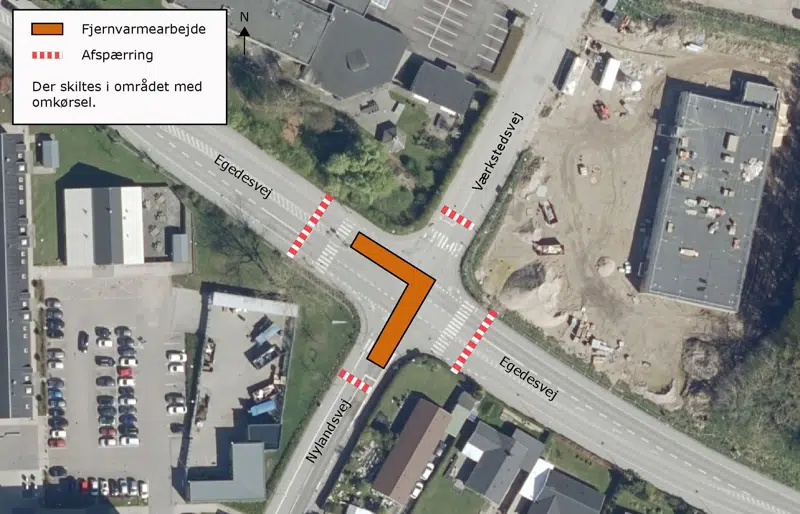 Krydset Egedesvej/Nylandsvej/Værkstedsvej spærres grundet fjernvarmearbejde