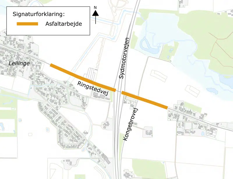 Fra onsdag den 14. juni til fredag den 23. juni udføres der asfaltarbejder på Ringstedvej fra Lellinge mod i Køge. Arbejdet udføres som Aften/natarbejde i tidsrummet kl. 18.00 til kl. 05.00.