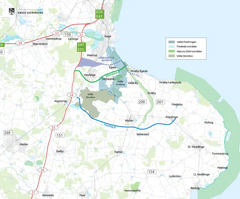En ny vejforbindelse til Stevns skal både aflaste vejnettet i Køge by for gennemkørende biltrafik fra Stevns og samtidig skabe en mere direkte regional forbindelse fra Stevns til motorvejsnettet. På tirsdagens byrådsmøde besluttede et flertal, at Køge Kommune vil anbefale Vejdirektoratet at lave en supplerende miljøkonsekvensvurdering af to linjeføringer.