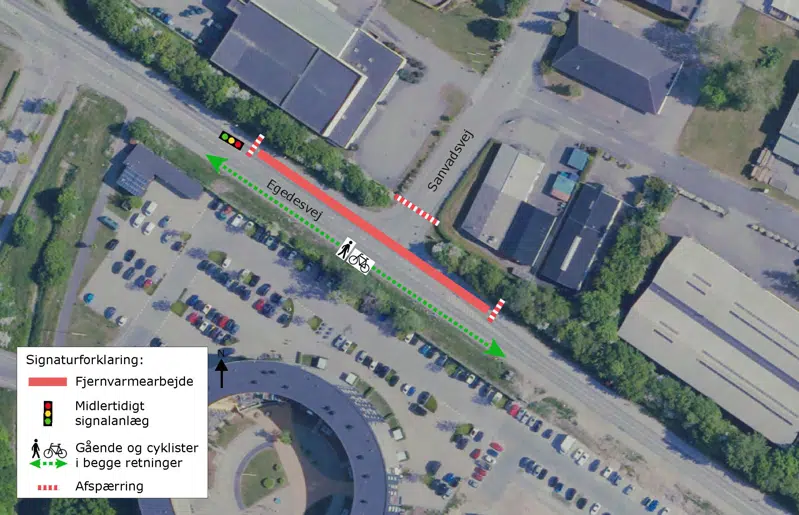 Cyklister og gående henvises til den sydlige side af Egedesvej.