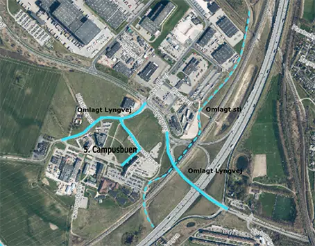 Byrådet godkendte d. 27. januar 2015 anlægsbevilling til byggemodning af Campus Køge herunder nye veje i området bestående af omlægning af Lyngvej samt Campusbuen.
